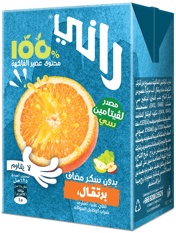 راني برتقال بدون سكر مضاف يسعدكم بحلاوته الطبيعية ولذة فواكهه.